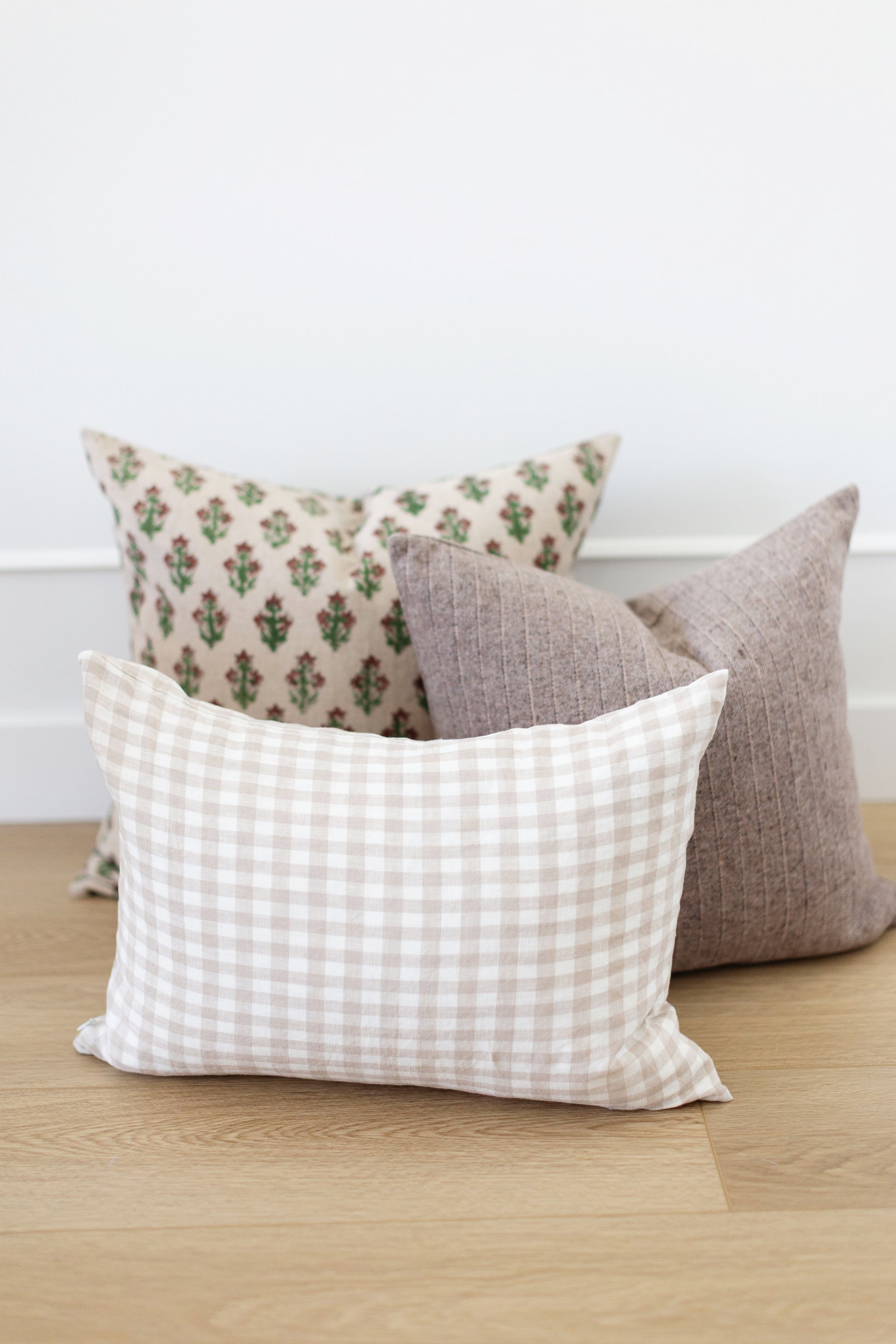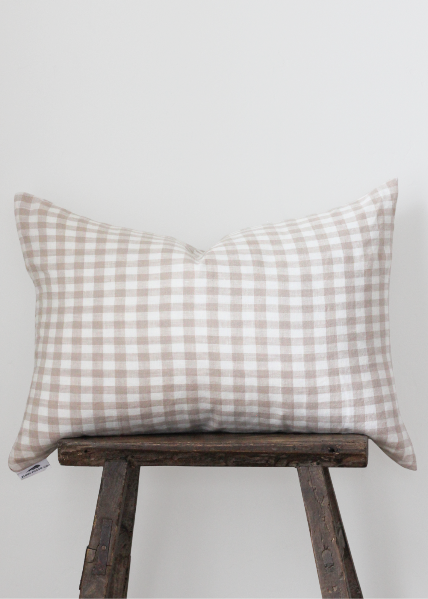Elevated yet effortless, this pillow features natural linen and creamy white gingham pattern. It’s crafted with linen material, giving it both texture and durability. The 14x20 lumbar adds structure and makes it style beautifully. At 14x20 inches, it’s perfectly sized for layering with other pillows or anchoring a space on its own. An easy upgrade that makes your sofa or bed look designer-level.