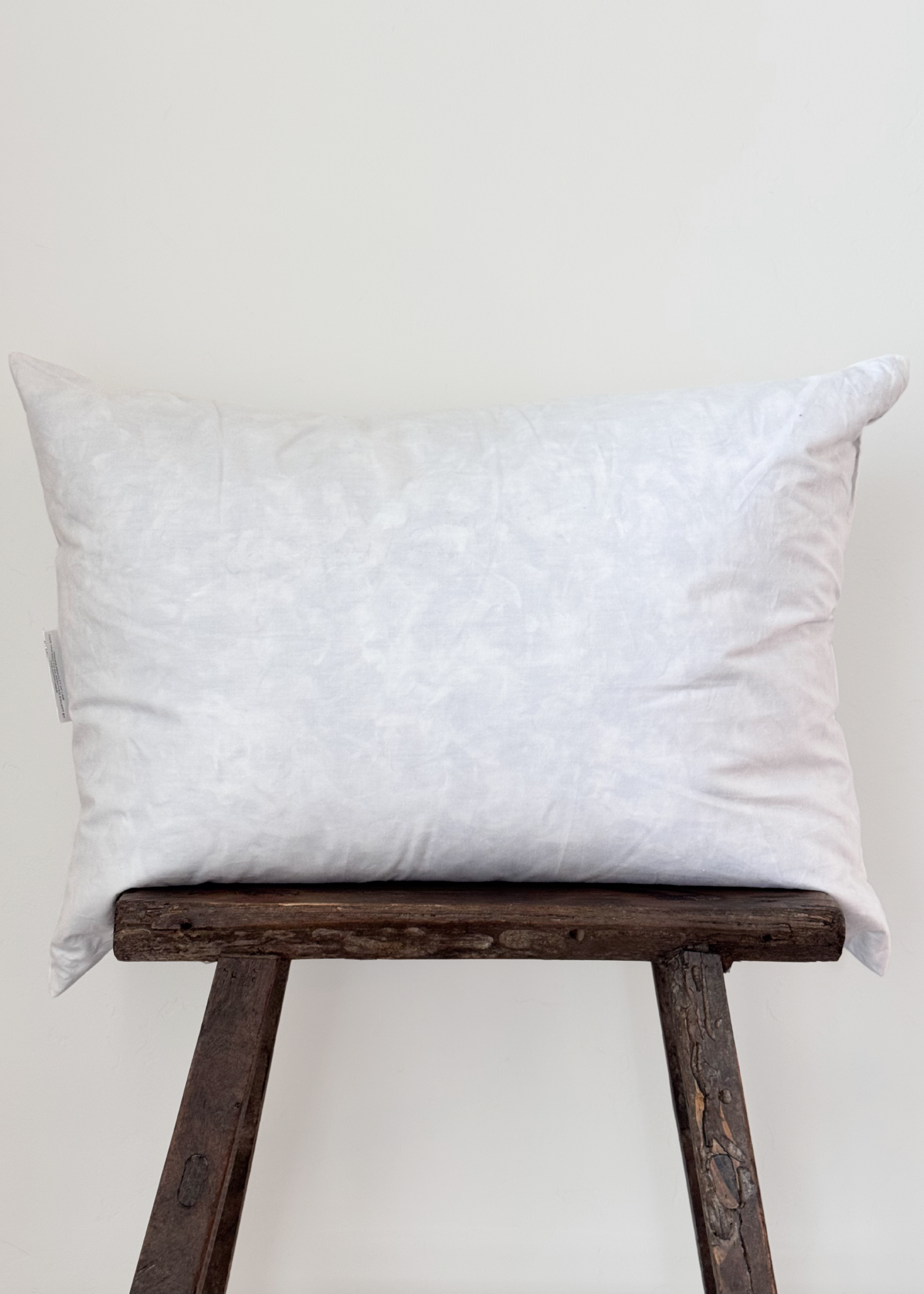 Our premium pillow inserts are made with a 95% feather / 5% down fill and covered in soft cotton. Each insert is generously overstuffed to give you that perfectly full, plump look—no need to size up. The 14x20 insert is designed to fit both 14x20 and 12x20 pillow covers beautifully, so your pillows always look effortlessly fluffy and styled.