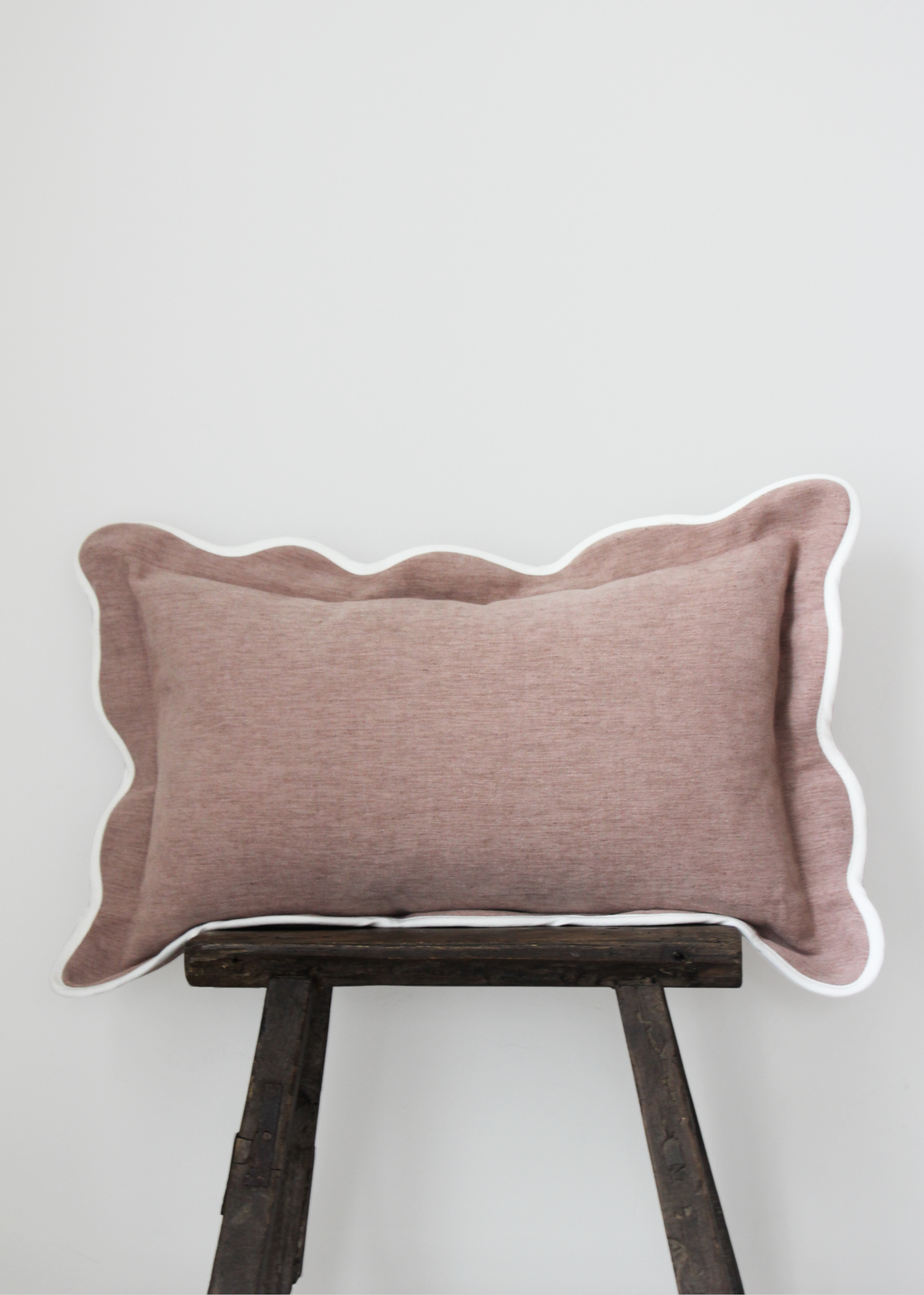 Bring a touch of charm to your space with this scalloped-edge pillow. The mauve/pink fabric, with its velvety chenille-like feel, is beautifully framed by a creamy scalloped trim. Made from a durable polyester-linen blend, it’s as soft and cozy as it is stylish—perfect for adding texture and a classic-meets-playful detail to your pillow mix.